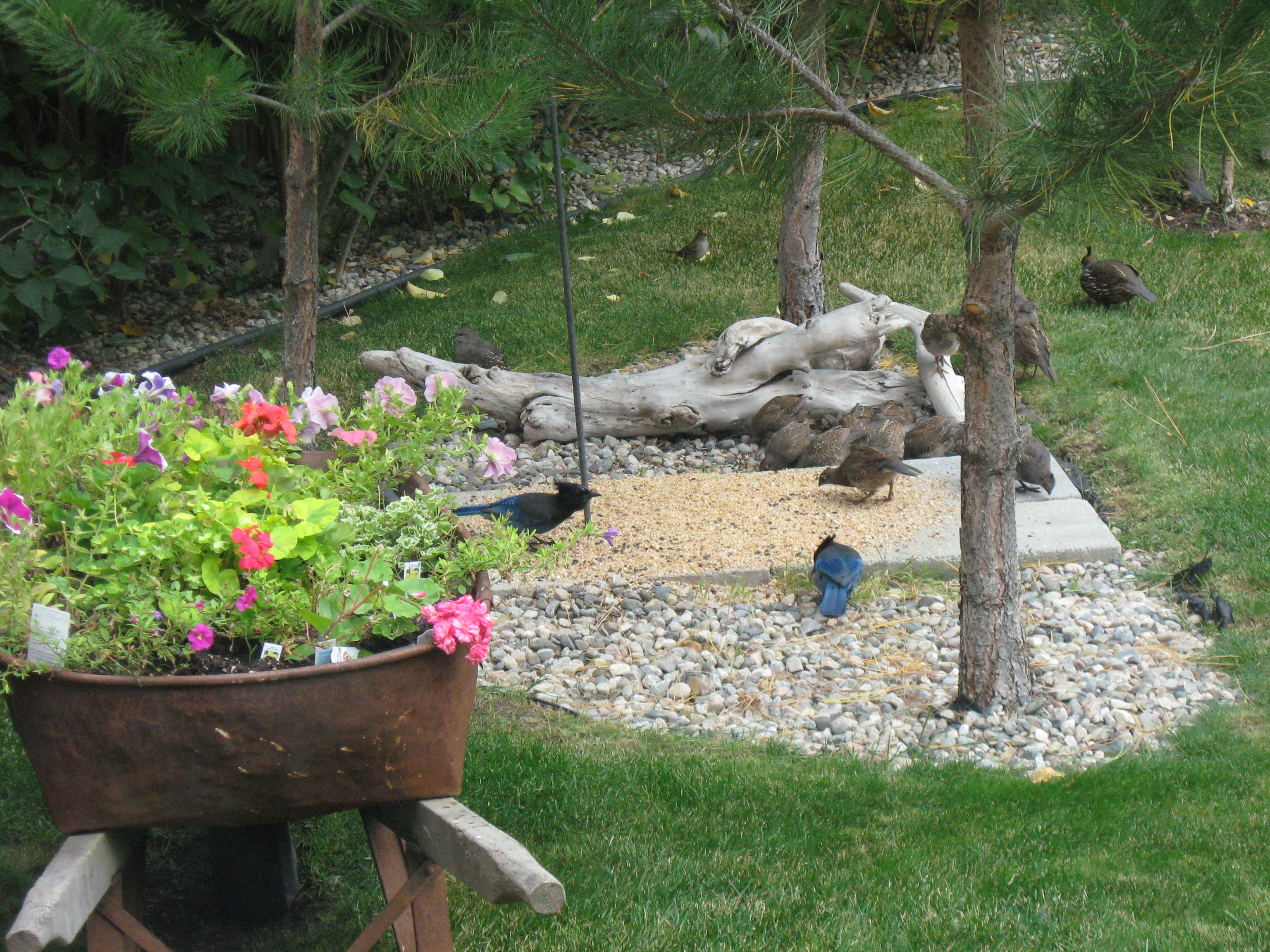 - Love the one you’re with.(Sounds like another song title, right?) Just because Antoinette and Marcelle have become our favoured couple to share our backyard pond with, it doesn’t mean it’s an exclusive situation. The feeding station has been opened up to many a platoon of quail or a band of chickadees, especially in the late spring, as ideas of nesting abound.