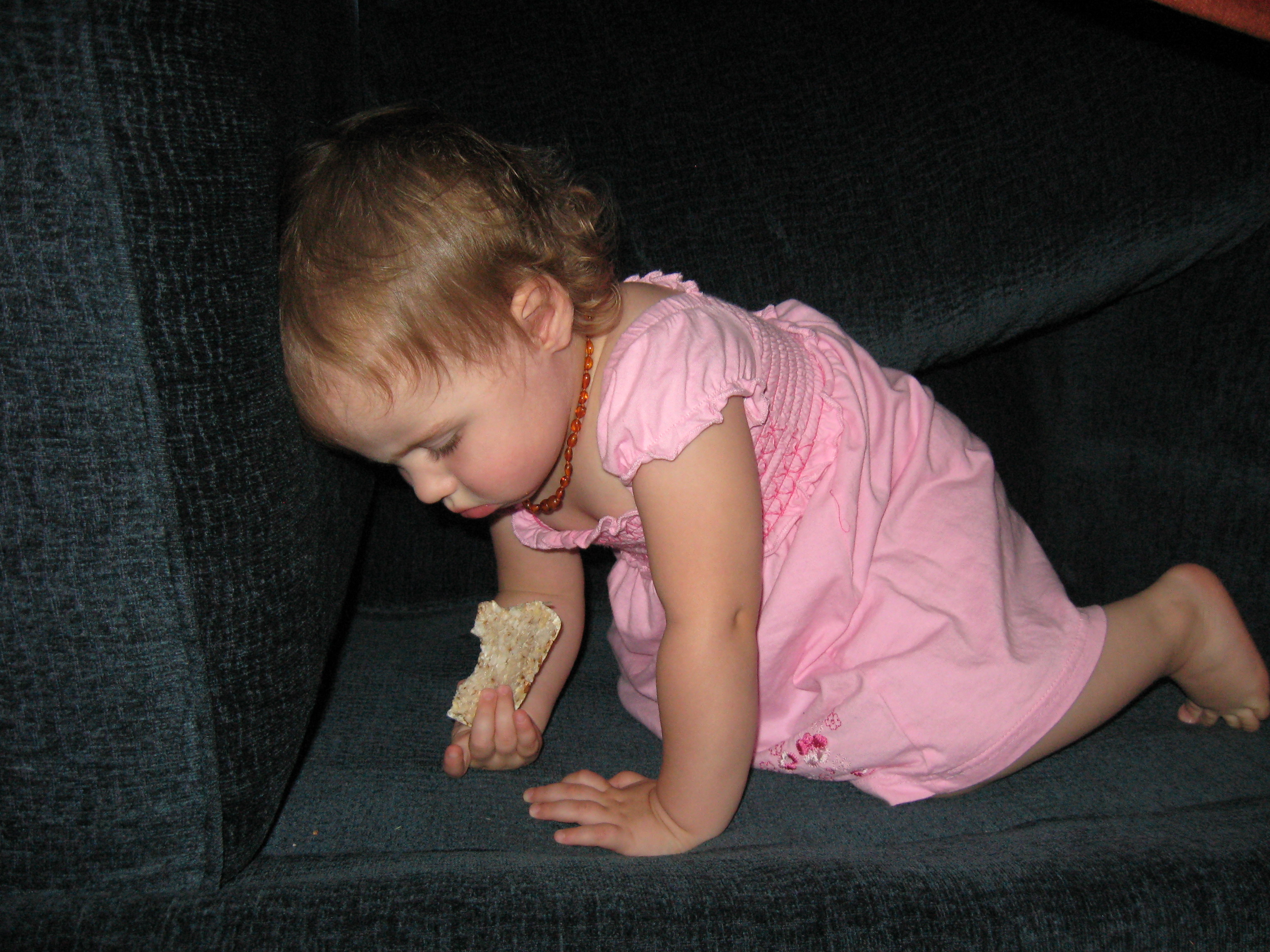 - Discovering the bits of slimed, uneaten rice cakes or biscuits that the little munchkin has squirreled away under sofa cushions or in her toy bins.