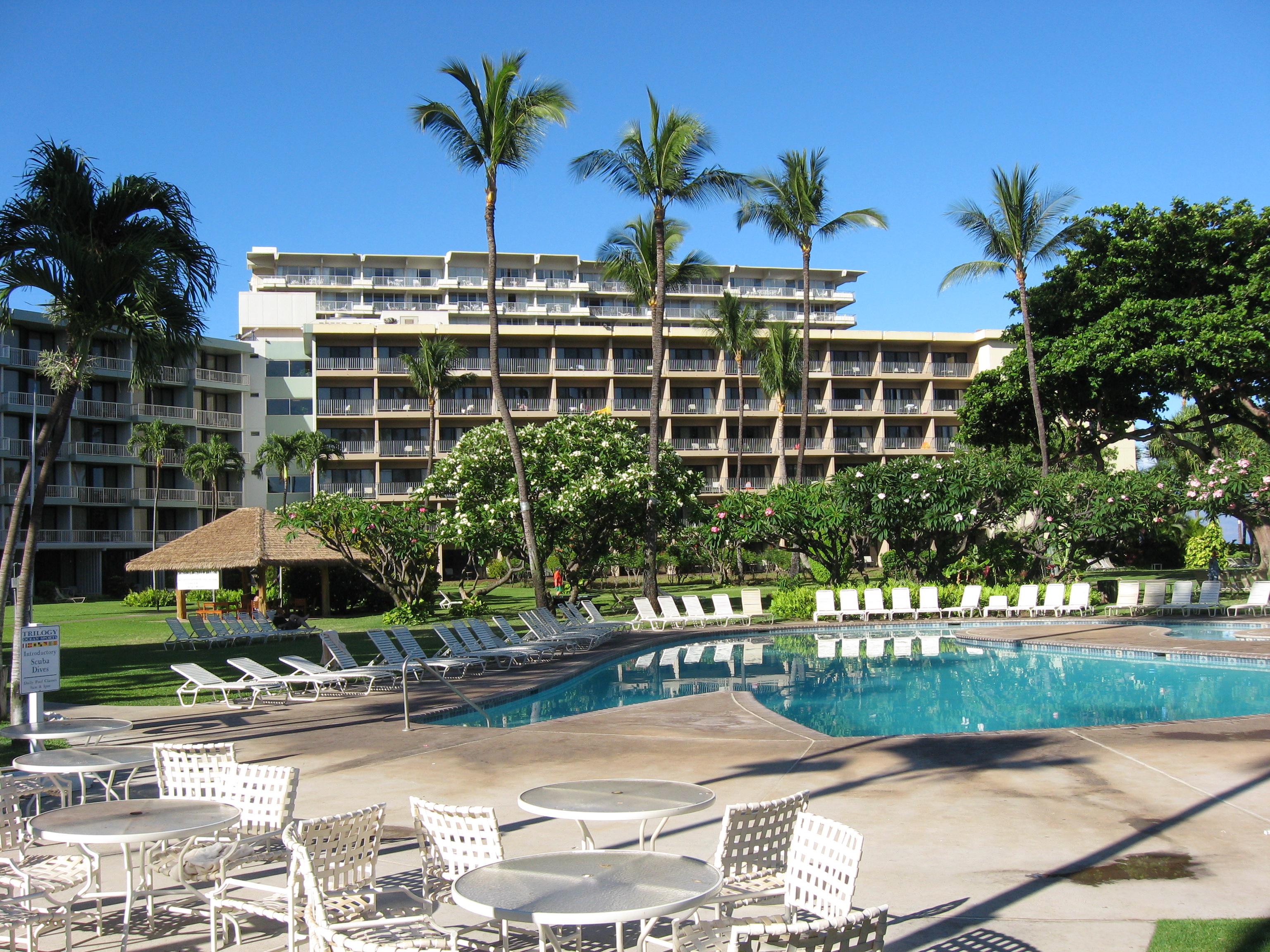 Poolside view of our hotel on Maui