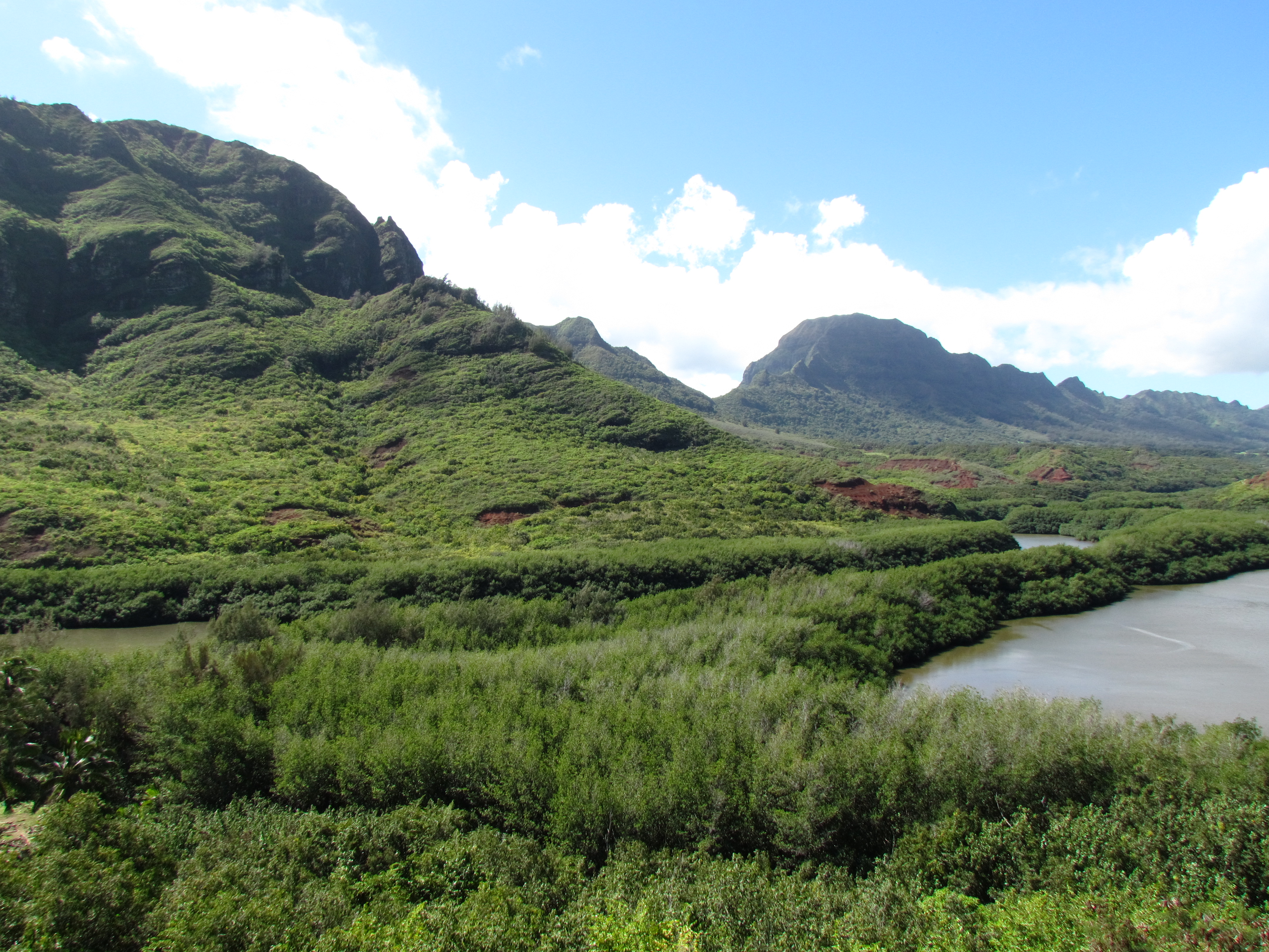Slopes rise up from the Menehune Fish Pond